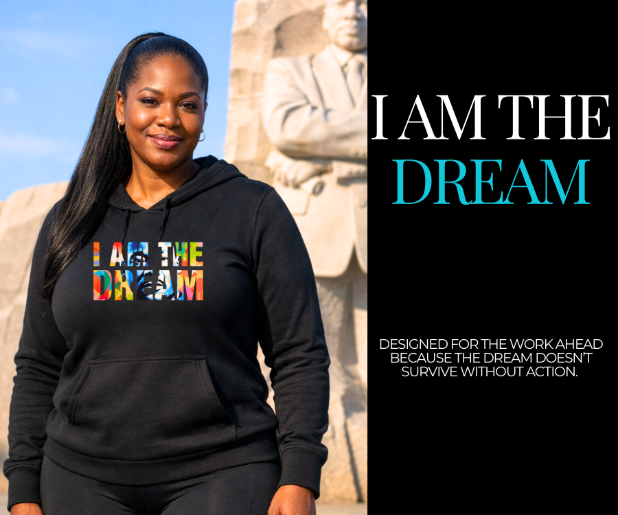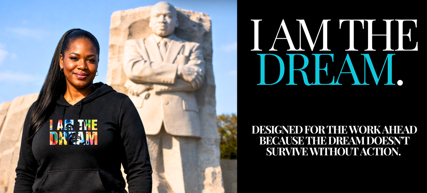 The Dream Collection honors Dr. King’s legacy through action-driven design. Featuring I Am the Dream and Livin’ the Dream, these pieces are made to be worn while doing the work, not just remembering it.