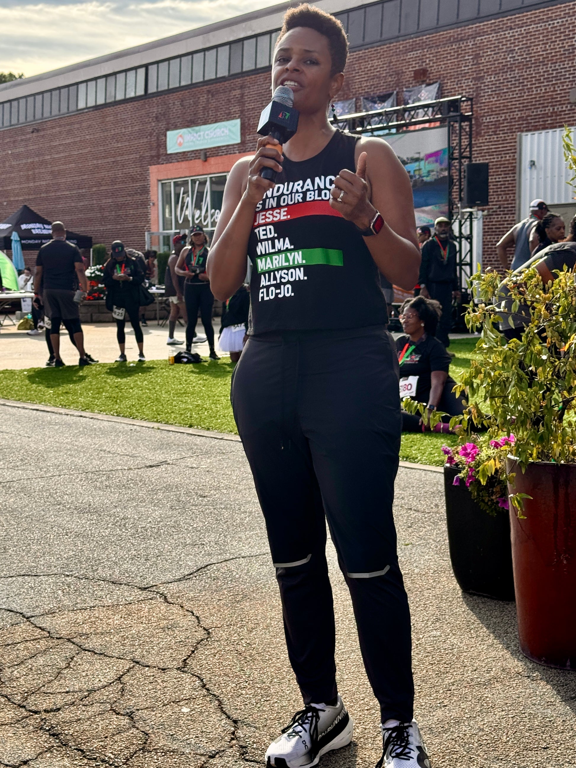 This isn’t just a tank, it’s a tribute. Featuring the bold statement “Endurance Is in Our Blood” and the names of Black running legends from sprinters to marathoners, this crop tank honors the athletes whose grit carved the path for today’s run community. From Jesse Owens to Flo-Jo, from Ted Corbitt to Marilyn Bevans, these names remind us that our strength is inherited, and our endurance is generational.