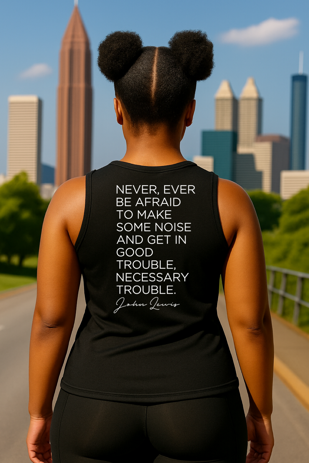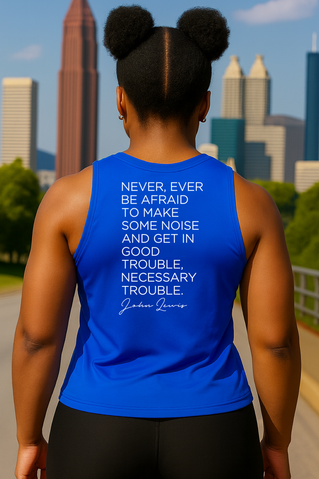 Troublemaker on the front. A call to action on the back. Inspired by the fearless words of civil rights icon John Lewis, this piece is for the woman who won’t sit down, stay quiet, or look the other way.